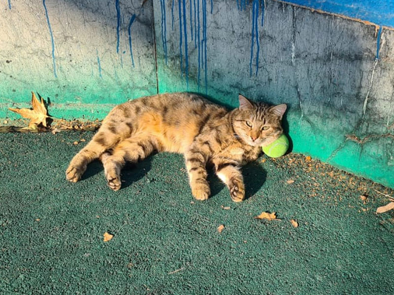 بازی تنیس در زمین های مجموعه تنیس جهانشهر در هوای دلچسب پاییزی بسیار حال و هوای خوبی دارد . در این حال و هوا تنیس تماشاچیان زیادی دارد که یکی از این تماشاچیان بازی تنیس را همراه با حمام آفتاب و بصورت لم داده روی توپ تنیس تماشا می کند .